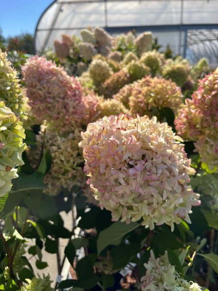 Hydrangea paniculata 'Magical Lime Sparkle' - plná lata, bílá → růžová
