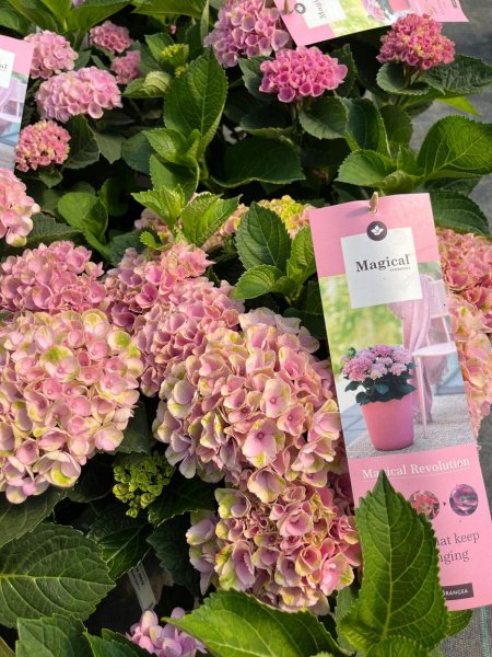 Magical Hydrangea - vyšlechtěny na velmi dlouhou dobu kvetení (až 6 měsíců). Po dobu kvetení mění barvu květu, často v kombinaci se zelenou. Jsou odolné, mají pevné stonky a zvládnou i světlejší stanoviště.